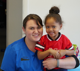 Standing with a young daycare child at Noah's Ark Daycare 1 (Used by permission)
